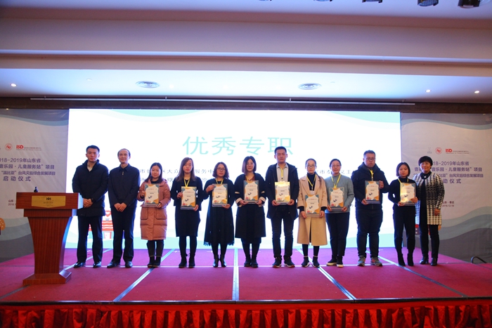 启动仪式上,对2017-2018年壹乐园·儿童服务站项目中的优秀专职进行表彰