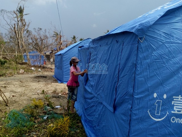 7月25日起,壹基金援助的1000条彩条布开始在翁田镇发放,分别发放给明月村、大福村、茂山村、博文村、翁田村、堆头村6个村2000户受灾农户,彩条布可用作房屋临时封顶,也可防雨防水防风,解决房屋受损农户临时安置问题。