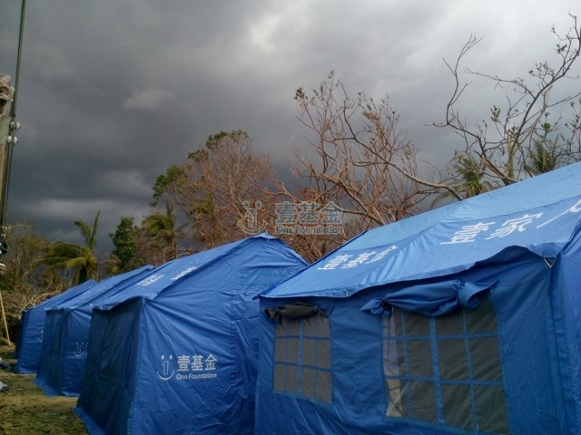7月25日,在翁田镇龙南村委会山头村,壹基金援建的安置点搭建起来了。山头村民小组共38户,“威马逊”台风灾害后,只有4间房稍微完整些,其他的房屋基本倒塌或成为危房。当天,37顶帐篷刚刚搭起来,暴雨就来了。由于山头村是从龙马乡划分到翁田镇的,也比较小,受到外界关注少。