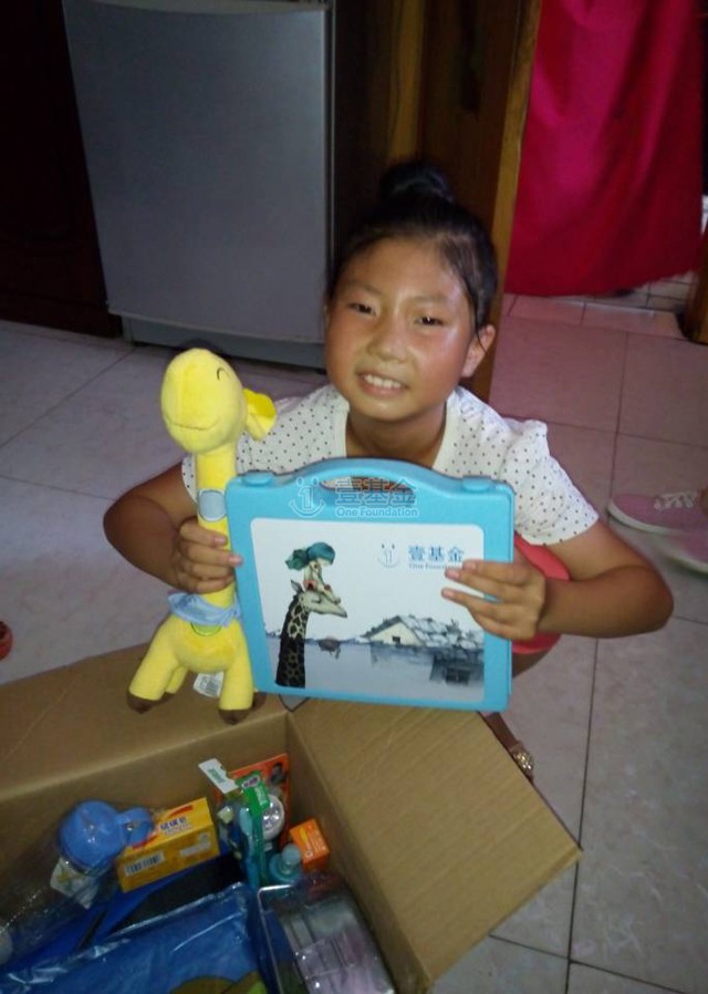 美琪,在二道门中心小学上一年级,她最喜欢温暖包中的长颈鹿玩偶。