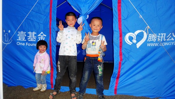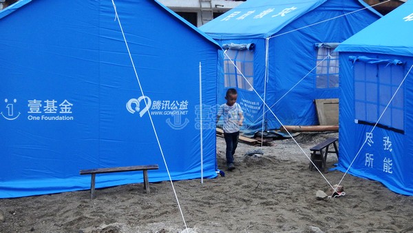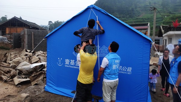 在安置点发放了12顶帐篷,这是第一个由民间公益组织建立的安置点,也是壹基金针对5.25石阡特大洪灾提供的第1批援助物资。