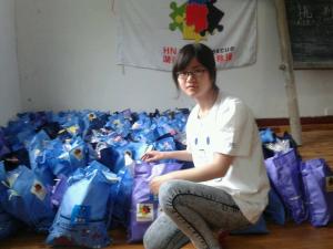 5月13日-15日,壹基金联合救灾的伙伴湖南民间联合救灾网络志愿者蔡灵对救灾物资询价并做发放前的准备。