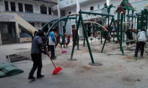 报京乡中心学校的学生帮助安装壹乐园游乐设施,成为志愿者