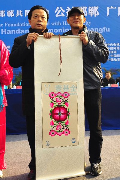 李连杰先生与邯郸市市长郭大建互赠礼物