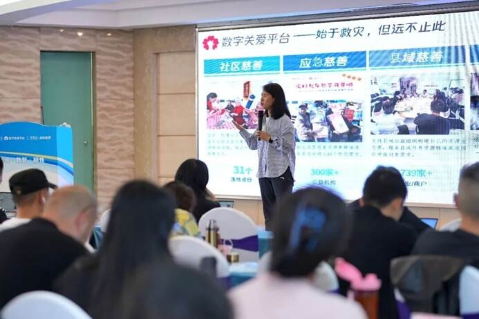 腾讯公益慈善基金会数字关爱平台负责人曹帆为会议致辞,向支持平台发展的各方伙伴表示诚挚感谢,并展望了数字公益未来的合作方向与创新可能。