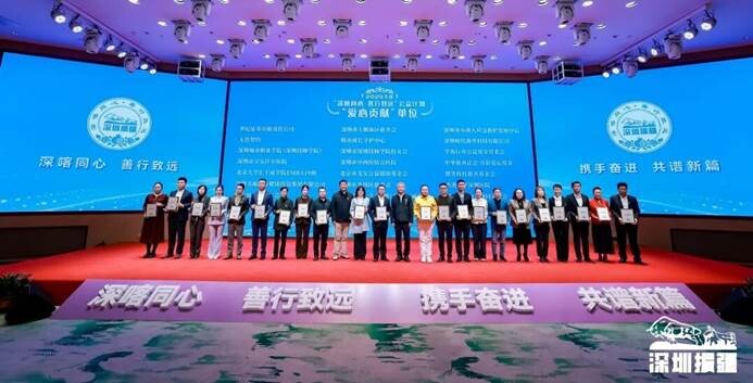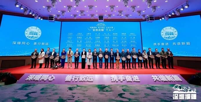 会上,主办单位为“深喀同心·善行致远”公益计划67家2025年度爱心贡献单位和43名爱心贡献个人颁发了纪念牌。来自腾讯基金会、深圳市儿童医院、深圳市机械行业协会、深圳国际仲裁院等爱心单位代表先后上台发言,与大家分享了公益援疆路上的经历和感悟。