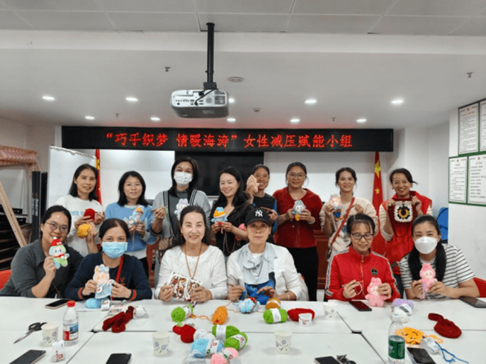 盐田区海涛社区的刘华老师,用一根钩针开设公益课程,为全职妈妈们编织出减压空间和情感联结,“看着姐妹们一边织一边笑,是我最高兴的事。”