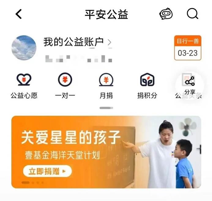平安公益平台通过首页露出、流量带动、公益头条发布等举措支持壹基金蓝色行动,呼吁更多用户关注和理解孤独症群体。