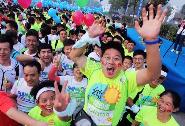 在现场,参与者纷纷举起手机留影,并通过微博、微信分享给朋友们,来自长沙的一位白领周小姐说:既能做运动,又能做公益,这样的活动非常有意义。运动能流汗,公益让人快乐!