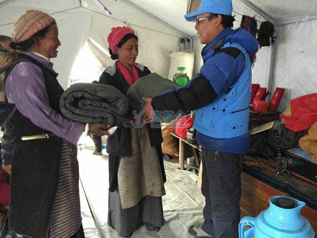 此外,壹基金救援联盟的新疆队与西藏队在武警吉隆边检站的兵哥哥协助下,继续在吉隆县的卓唐村、热玛村等多个村发放250床棉被。吉隆昼夜温差大,夜里气温跌破冰点,这些棉被希望能帮助受灾同胞们抵御寒冷。
