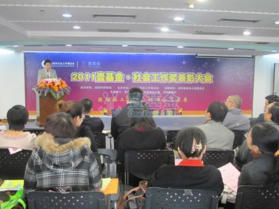 12月30日上午,“2011壹基金•社会工作奖”表彰大会在市民政局18楼会议室隆重举行。深圳市民政局余智晟副局长、深圳市民政局社工处骆冰处长,深圳壹基金公益基金会杨鹏秘书长,深圳市现代公益组织研究与评估中心赵环副主任等领导及全市近40家社工服务机构负责人出席了大会。