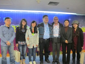 余智晟副局长为杨鹏秘书长赠送纪念品 获奖社工与李光明秘书长、赵环副主任合影纪念